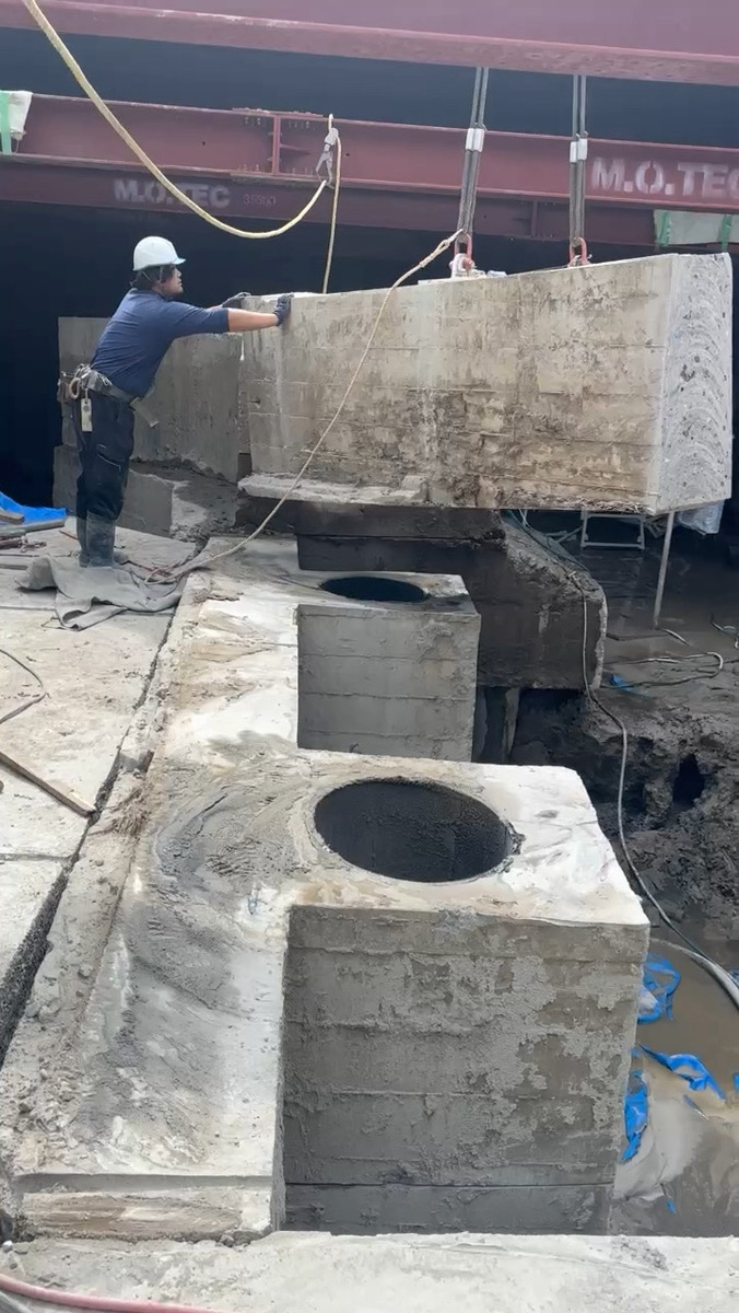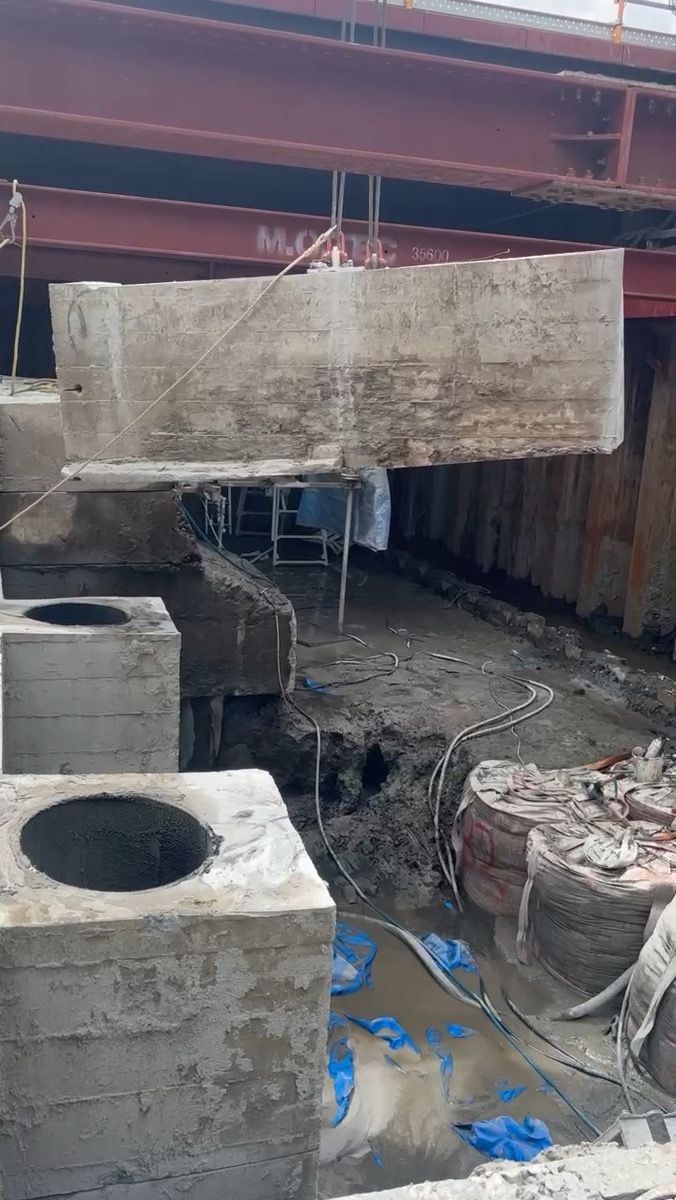 下部工ブロック撤去工 ワイヤーソー切断 コア削孔 アンカー取付け |